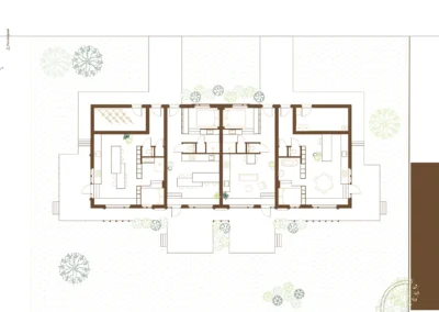 De gevels zijn afgewerkt met unieke mozaïektegels, ornamentiek die elke woning een eigen gezicht geeft. Luxe badkamers en ruime slaapkamers bewijzen dat klein wonen niet hoeft te voelen als inleveren. Samen ontwierpen we geen compromis, maar een optelsom van wensen. Door gedeelde was- en bergruimtes bleven de kosten laag. We hielpen ze koers houden in het vergunningentraject, begeleidden het bouwproces en dachten mee over mogelijkheden voor zelfbouw.