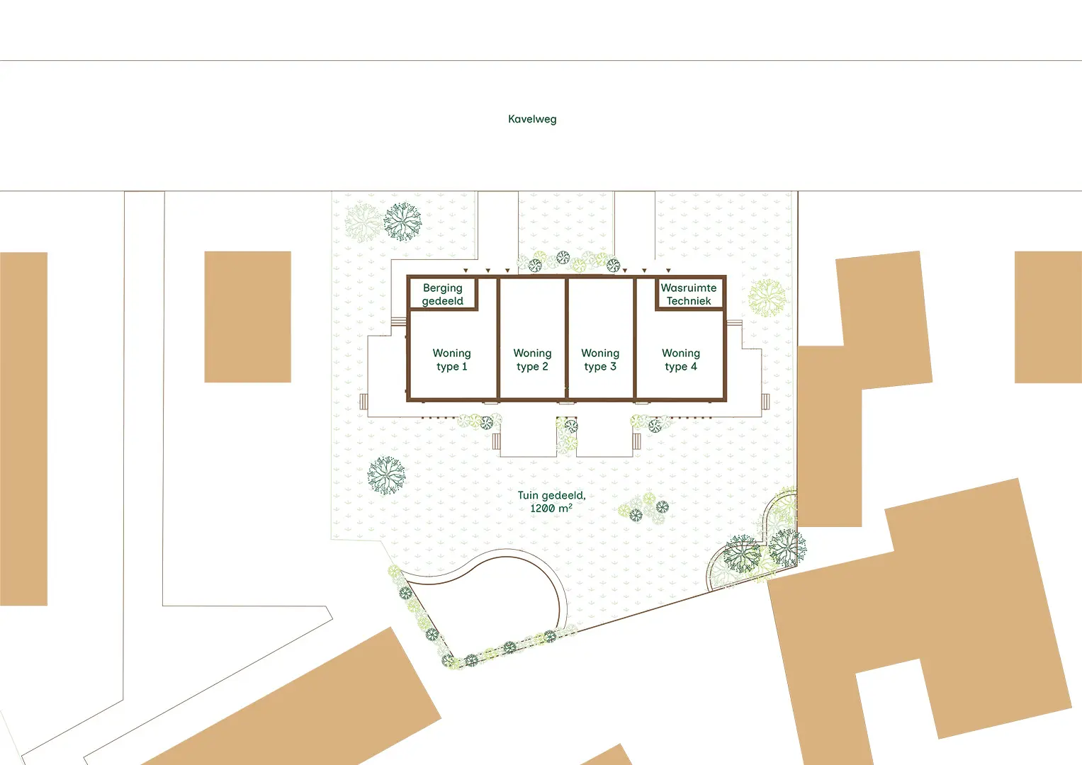 Vier vrienden: Anna, Susan, Guusje en Mick, zaten allemaal in hetzelfde schuitje: starters in een overvolle woningmarkt, op zoek naar een plek met groen, rust en eigenheid, midden in de stad. Appartementen met een balkon waren er genoeg, maar ze droomden van meer. Een thuis met een tuin. Privacy én verbinding. Bewust leven, zonder in te leveren op comfort.